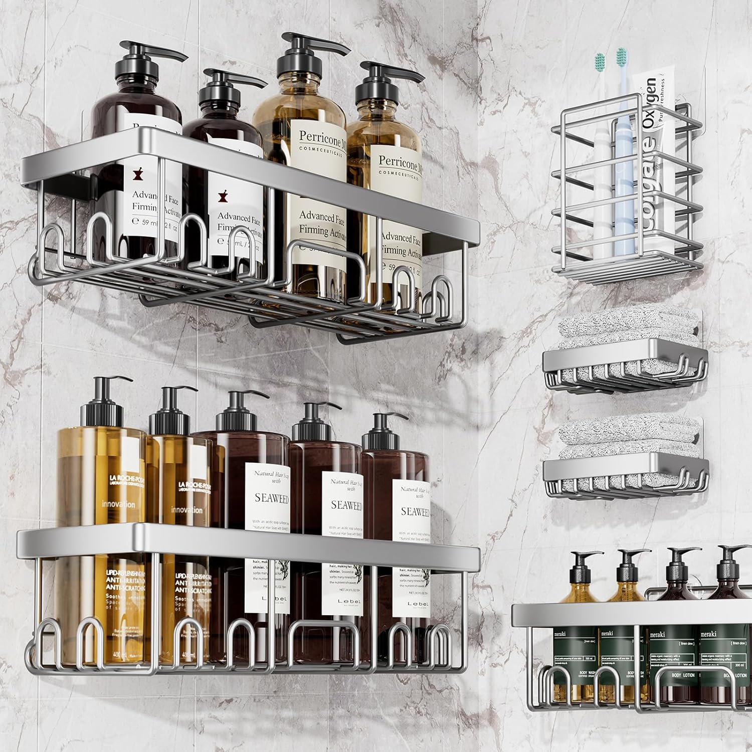 Adhesive Shower Caddy 6-Pack, Large Capacity Bathroom Organizers and Storage